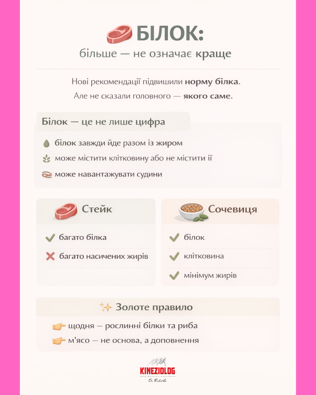 Я - Наталія Афіцька, дієтолог і нутриціолог центру фізичного відновлення KINEZIOLOG, і хочу перекласти ці рекомендації з мови документів на мову реального життя. Детальніше у інфографіці.
